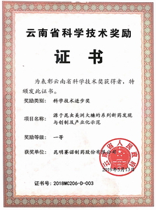 云南省科學(xué)技術(shù)獎勵證書(shū)