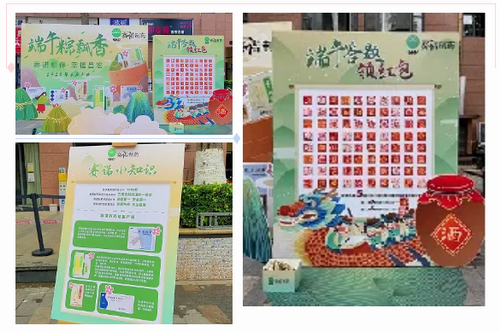 活動現(xiàn)場準(zhǔn)備了趣味問答、射五毒、釣粽子、團(tuán)扇DIY等趣味游戲環(huán)節(jié)。游戲現(xiàn)場,大朋友小朋友互動踴躍,氣氛熱烈、人頭攢動、熱情高漲,大家都在娛樂中感受端午節(jié)濃厚的節(jié)日氛圍。